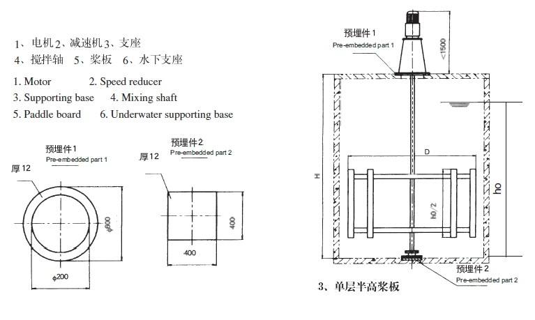 絮凝池、混凝池攪拌機一般選擇框式攪拌,要求轉速低,池子內每個地方都需要輕微攪動,即能產生絮團,又不會把絮團打亂,所以框式葉片在低速下攪拌能達到很好的絮凝混凝效果。